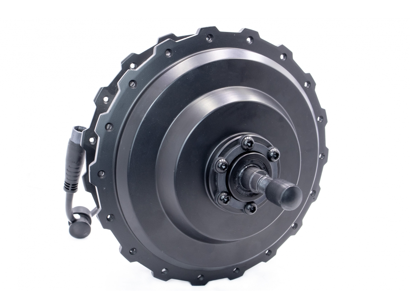 Корпус мотора изготовлен из прочного алюминиевого сплава, что обеспечивает хорошее охлаждение и долговечность. Модель совместима с 36-спицевыми ободами и поддерживает установку дискового тормоза. Мотор работает тихо, не требует частого обслуживания и способен развивать скорость до 50–55 км/ч в зависимости от контроллера и диаметра колеса.
