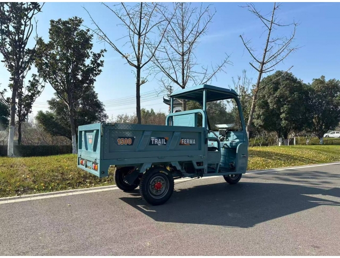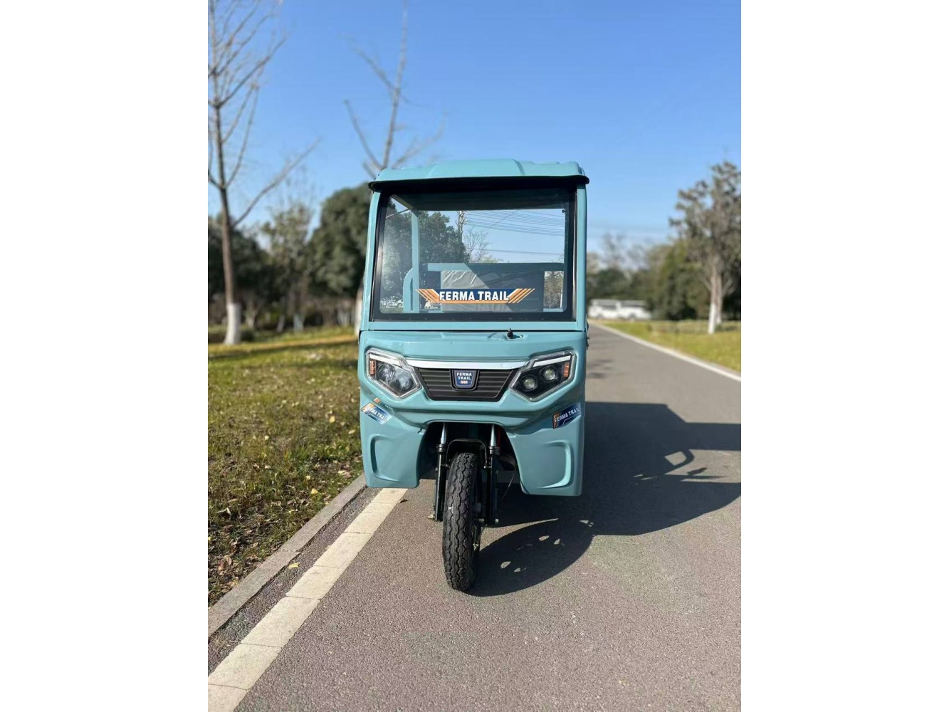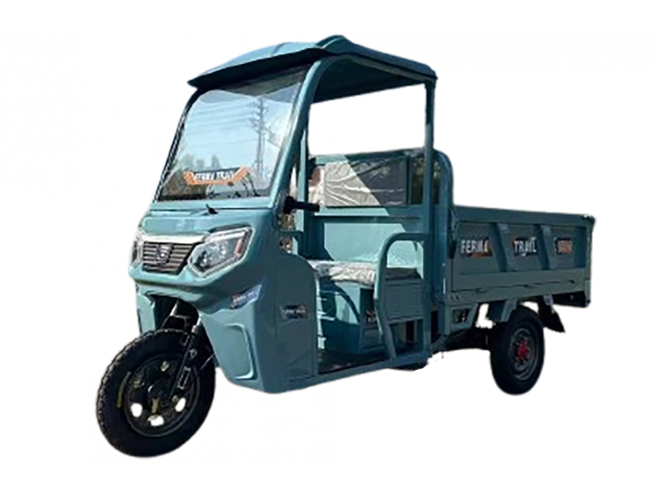Это мощный и надёжный трёхколёсный грузовой электроскутер, предназначенный для хозяйственных работ, фермерских задач, коммунальных служб и коммерческого использования. Модель оснащена прочной стальной рамой, большой грузовой платформой и закрытой передней частью с ветровым стеклом и крышей, что обеспечивает комфорт при движении в любую погоду.