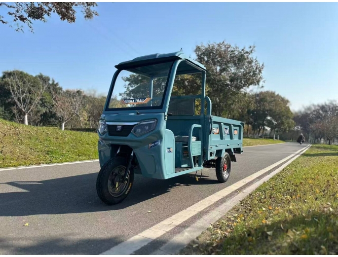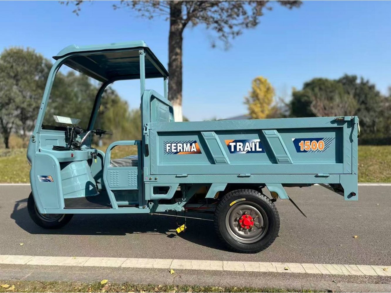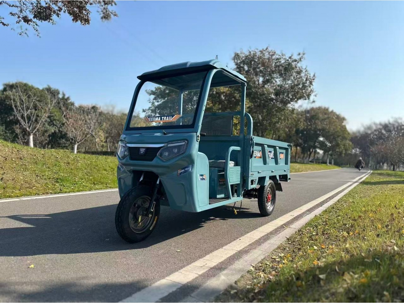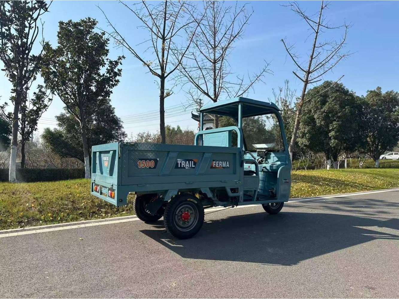 Это мощный и надёжный трёхколёсный грузовой электроскутер, предназначенный для хозяйственных работ, фермерских задач, коммунальных служб и коммерческого использования. Модель оснащена прочной стальной рамой, большой грузовой платформой и закрытой передней частью с ветровым стеклом и крышей, что обеспечивает комфорт при движении в любую погоду.