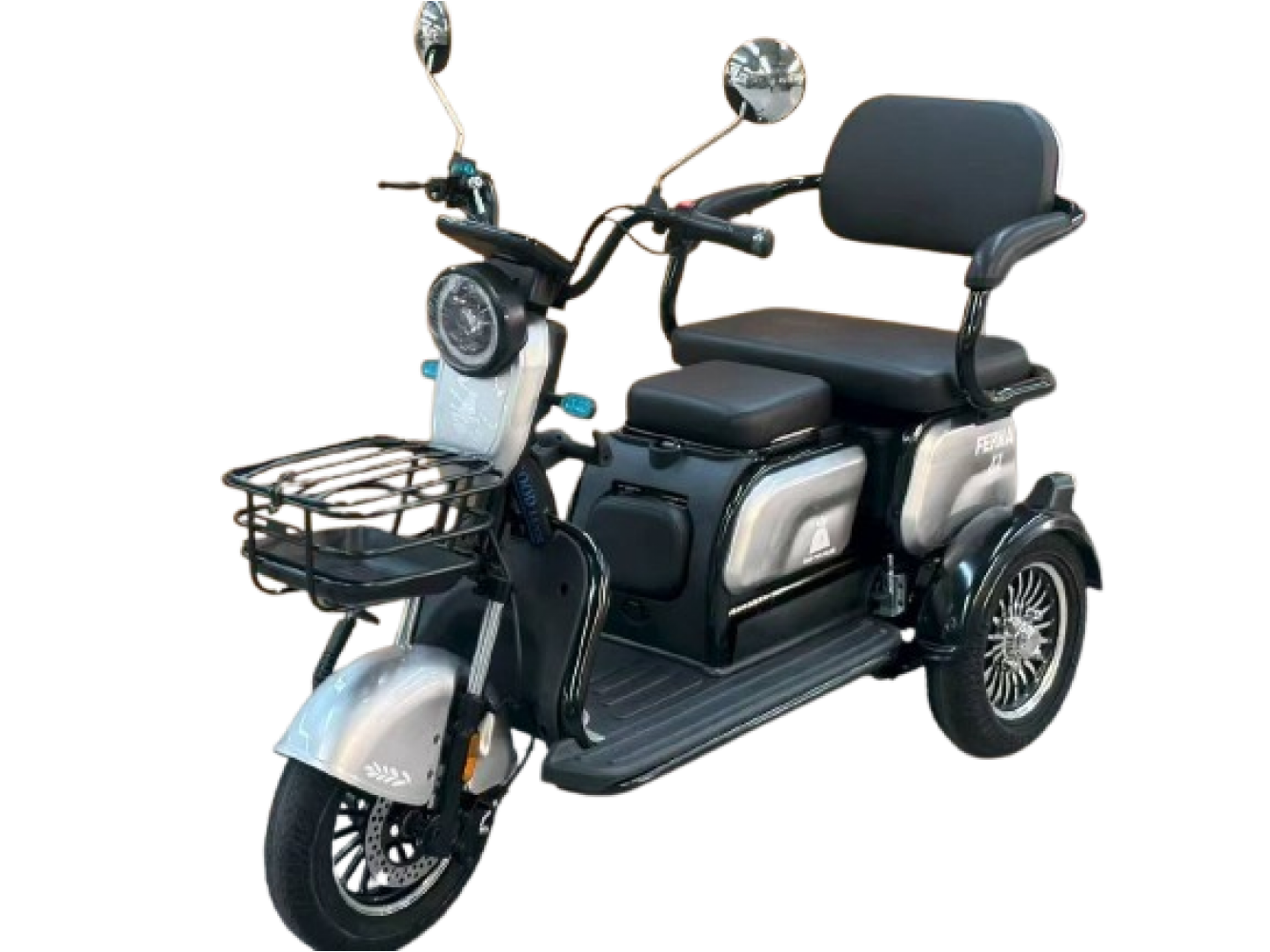 Это современный трёхколёсный электроскутер, созданный для комфортного и безопасного передвижения по городу. Благодаря двум задним колёсам модель обладает повышенной устойчивостью, что делает её идеальным выбором для пожилых людей, пользователей с ограниченной мобильностью или тех, кто ценит максимальный комфорт и уверенность на дороге.
